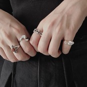 太めのデザイン(品名:Ring 847/Nero Ring)などとリンクコーデするのもオススメ。